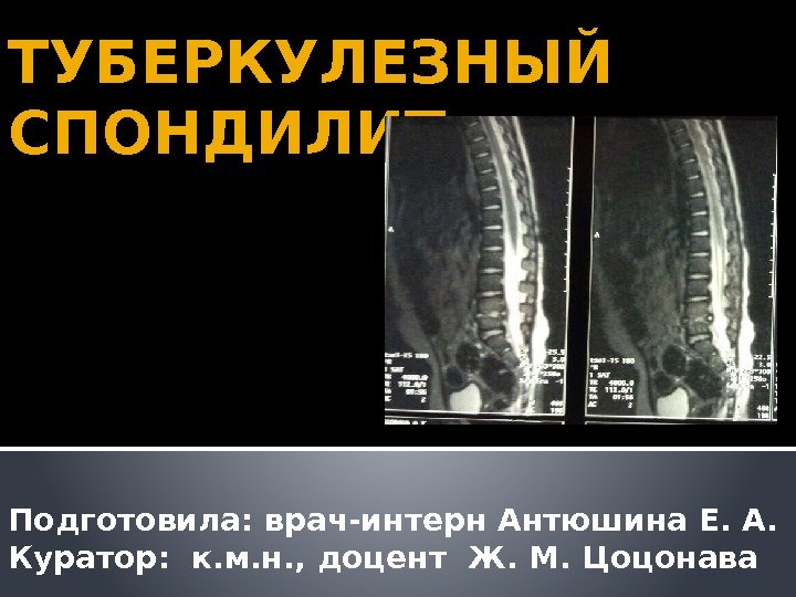 ТУБЕРКУЛЕЗНЫЙ СПОНДИЛИТ Подготовила: врач-интерн Антюшина Е. А. Куратор: к. м. н. , доцент Ж. М. Цоцонава