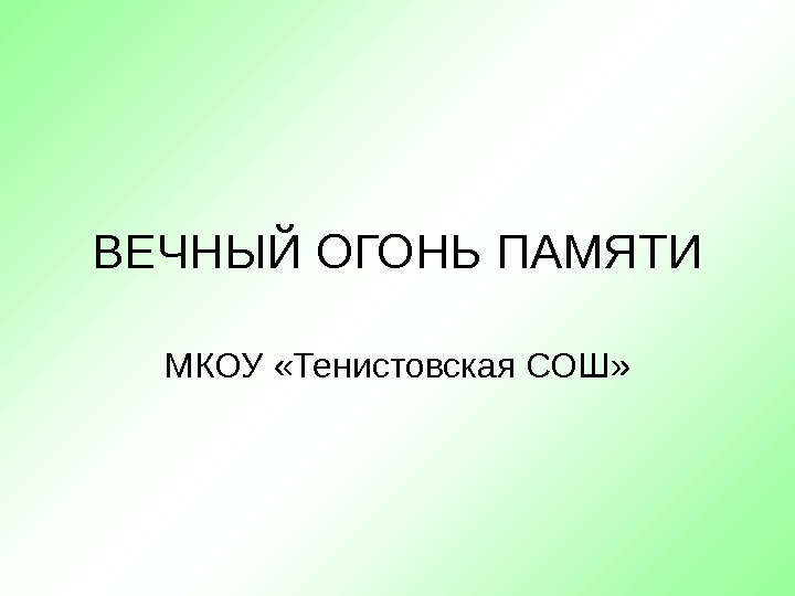Описание презентации ВЕЧНЫЙ ОГОНЬ ПАМЯТИ МКОУ «Тенистовская СОШ» 70 по слайдам