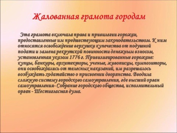 Начало преобразований. Пять указов Александра I от 2 апреля 1801 г. 2. Восстановлена в полном объёме «Жалованная грамота городам» ;