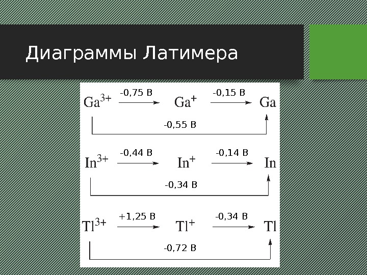 Диаграммы Латимера -0, 15 В -0, 55 В-0, 75 В -0, 34 В-0, 44 В -0, 14 В -0, 34 В -0, 72 В+1, 25 В