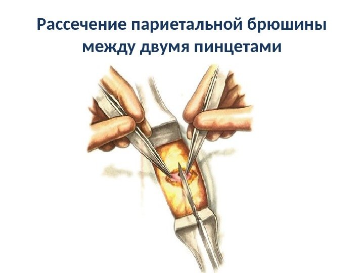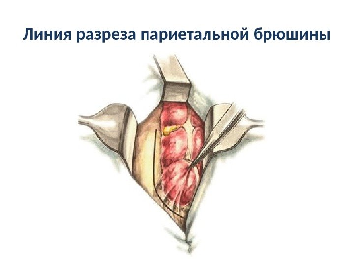 Техника операции Разрез передней брюшной стенки производят по Волковичу—Дьяконову—Мак Бурнею. Рассекают кожу и подкожную клетчатку, кровоточащие сосуды захватывают зажимами и перевязывают. Края кожной раны обкладывают салфетками и по зонду Кохера или пинцету рассекают по ходу волокон апоневроз наружной косой мышцы живота