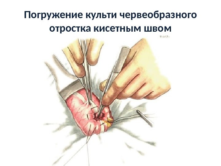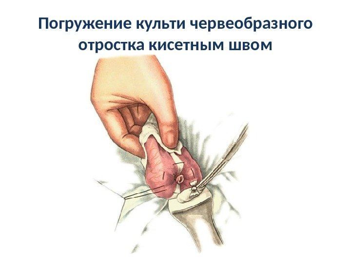 Червеобразный отросток пересечен. Культя его погружается кисетным швом