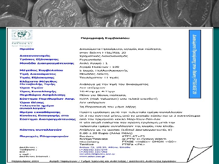 Options στην Ελλάδα • Calls & Puts • FTSE/ASE - 20 • Τιμές σε μονάδες, πολλαπλασιαστής 5 Ευρώ • FTSE/ASE – 40