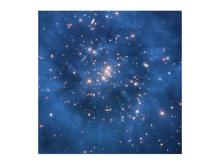 The principal constituents of a cluster The four principal constituents of clusters include: • Galaxies ~102 large galaxies; >103 total galaxies typical speeds ~103 km/s • Intracluster Stars very faint ( 1% sky) diffuse light (distinct from c. D halo light) comprises 10 -50% total galaxy light (in rich clusters; much less in poor clusters) probably tidally stripped stars • Hot Gas Hydrostatic atmosphere T ~107 -8 K X-ray emitter n ~10 -3 cm-3 L~ 1043 -46 erg/s ~ 10 -2 - 10 -4 Lopt Mgas ~ 5 × Mgals Z ~0. 3 Z סּ enriched : not all primordial • Dark Matter Dominates the total mass MDM ~ 4 × Mgas + gals