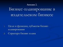 Лекция 2 Бизнес-планирование в издательском бизнесе 1 2