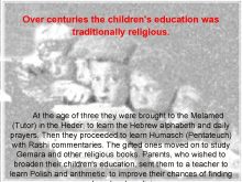 Over centuries the children s education was traditionally religious