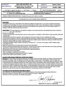 OHIO DEPARTMENT OF ADMINISTRATIVE SERVICES PERSONNEL DIVISION POSITION