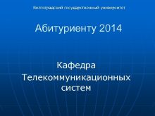 Волгоградский государственный университет Абитуриенту 2014 Кафедра Телекоммуникационных систем