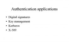 Authentication applications Digital signatures Key management