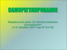 САМОРЕГУЛИРОВАНИЕ Федеральный закон О саморегулируемых организациях от 01