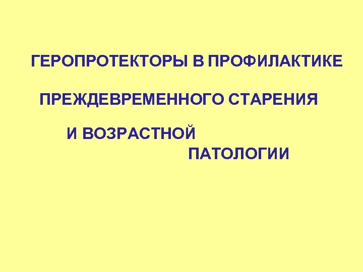 ГЕРОПРОТЕКТОРЫ В ПРОФИЛАКТИКЕ ПРЕЖДЕВРЕМЕННОГО СТАРЕНИЯ И ВОЗРАСТНОЙ ПАТОЛОГИИ