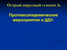 Острый вирусный гепатит А Противоэпидемические мероприятия в ДДУ