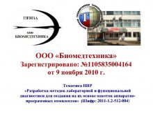 ООО Биомедтехника Зарегистрировано 1105835004164 от 9 ноября