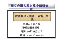 國立台灣大學財務金融研究 所 投資管理 戰略 戰術 戰 果 主講人 韋月桂 聯邦期貨總經理 時間 95年
