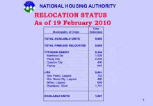 NATIONAL HOUSING AUTHORITY RELOCATION STATUS As of 19
