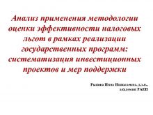 Анализ применения методологии оценки эффективности налоговых льгот в