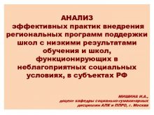 АНАЛИЗ эффективных практик внедрения региональных программ поддержки школ