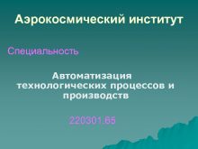 Аэрокосмический институт Специальность Автоматизация технологических процессов и производств