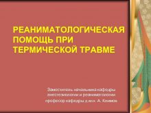 РЕАНИМАТОЛОГИЧЕСКАЯ ПОМОЩЬ ПРИ ТЕРМИЧЕСКОЙ ТРАВМЕ Заместитель начальника кафедры