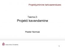Projektijuhtimine tarkvaarenduses Teema 2 Projekti kavandamine Peeter Normak