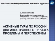 Российская международная академия туризма Алексей Рябов Директор Центра