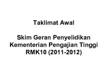 Taklimat Awal Skim Geran Penyelidikan Kementerian Pengajian Tinggi