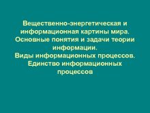 Вещественно-энергетическая и информационная картины мира Основные понятия и