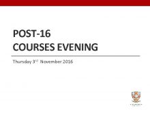POST-16 COURSES EVENING Thursday 3 rd November 2016