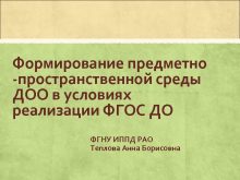 Формирование предметно -пространственной среды ДОО в условиях реализации