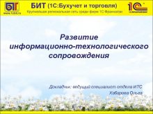 Развитие информационно-технологического сопровождения Докладчик ведущий специалист отдела ИТС