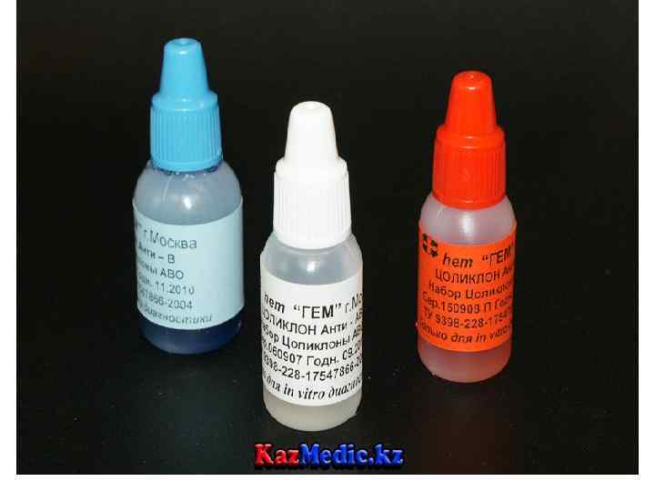 • Қан тобын анықтау • Қан тобын цоликлондар Анти А және Анти В көмегімен анықтау • Құрғақ пробиркаға венадан қан алып, тыныштыққа қояды сарысу бөліну үшін 20 -30 минутқа. • Ақ пластинкаға (планшетке) солдан оңға қарай : анти – А, анти – В, және анти – Д цоликлондарын тамыз. Жоғарғы жағына қан тобын анықтайтын адамның фамилиясы мен инициалдарын жазады. • Анти — А, Анти – В, Анти- Д цоликлондарын үлкен тамшымен (0, 01 мл) тамызады. • Антитела тамшылары жанына зерттейтін қаннан кіші тамшыдан (0, 01 - 0, 03) құямыз да араластырамыз.