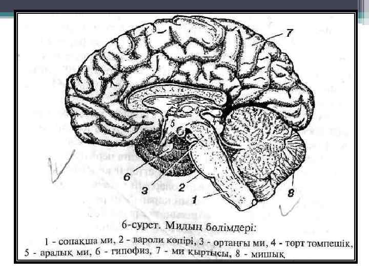 Ми 3 ірі бөлігі Үлкен ми(cerebrum) Мишық(cerebellu m) Ми сабауы(truncus encephalicus)