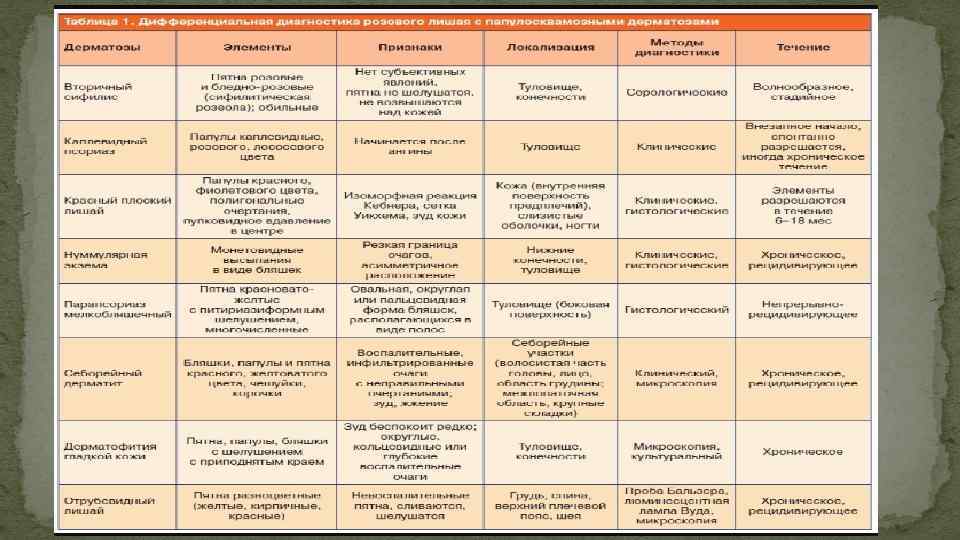 Красный плоский лишай это хроническое заболевание, поражающее кожу, слизистые оболочки, реже ногти. Красным плоским лишаем чаще болеют взрослые. Формы Типичная форма красного плоского лишая – многоугольные бляшки характерного розового цвета с лиловым оттенком; Гипертрофическая форма – крупные узелки и бляшки с бородавчатой поверхностью; Атрофическая форма – с гиперпигментацией или без нее; Буллезная форма красного плоского лишая представлена в виде подкожных пузырей; Эритематозная форма – распространенная форма с покраснением кожи. По течению красный плоский лишай может быть острым (продолжается до 1 месяца) или подострым (продолжается до 6 месяцев) и длительно протекающим (более 6 месяцев).