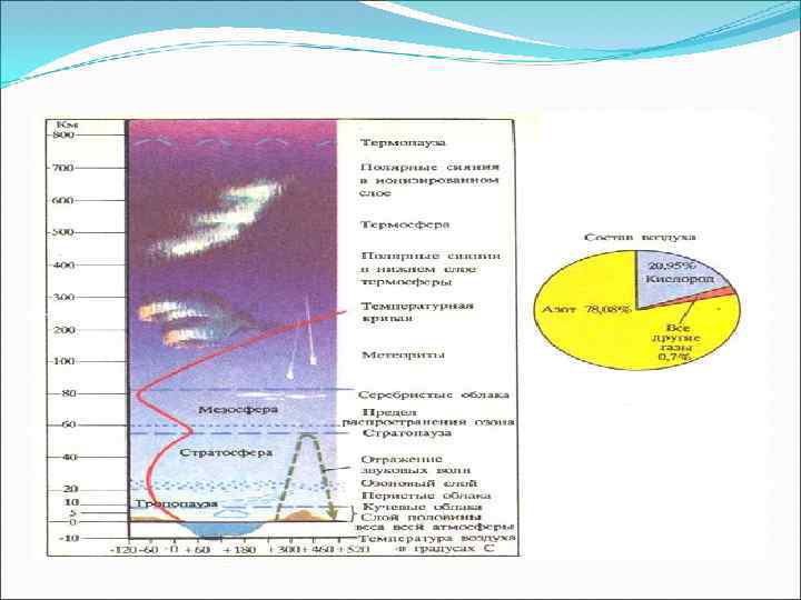Кіріспе. Атмосфера (көне грекше: ἀτμός — бу және Үлгі: Lang-grc 2 — шар) - Жерді қоршаған газ қабықшасы. Атмосфера 78% азоттан, 21% оттегіден және болымсыз мөлшердегі басқа газдардан тұрады. Атмосфераның төменгі қабаты тропосфера деп аталады, ол 10 -12 км биіктікке дейін (орта ендіктерде) созылып жатады. Одан биіктеген сайын температура төмендейді. Онан жоғары стратосферада температура тұрақты дерлік болып қалады (-40 С маңында). Ал шамамен 25 км-дей биіктіктен бастап бұл қабат Күннің ультракүлгін сәулелерін жұтатындығынан температура баяу артып отырады. Жер атмосферасының жоғарғы қабаттарында күн сәулелері күшті иондану туғызады. Атмосфераның ионданған қабаты ионосфера деп аталады. Атмосфера ғарыш кеңістігінен Жерге келетін сәулелерден басым бөлігін шағылдырады немесе жұтады.