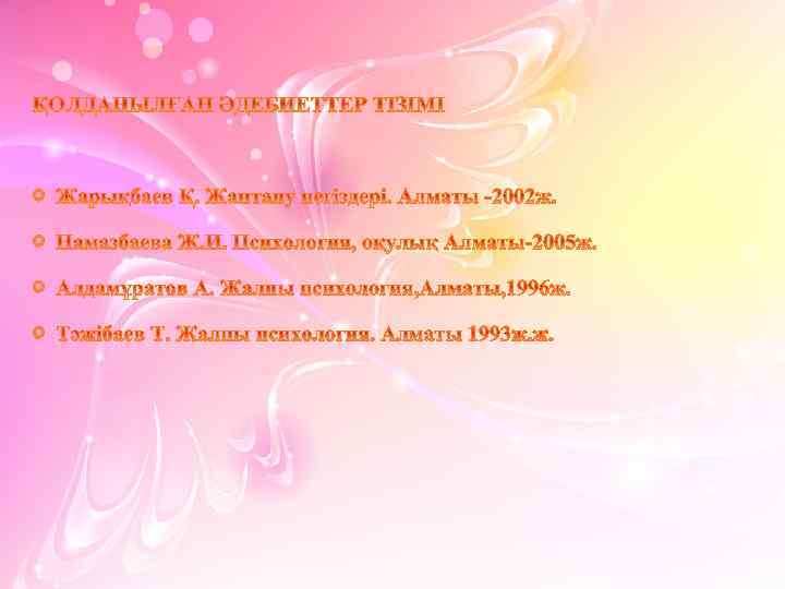 Жоспар 1. Ерік туралы түсінік. . . . 2. Еріктің физиологиялық негіздері. . . . 3. Сезім және күрделі эмоциялар. . . . . Қорытынды. . . . . Пайдаланған әдебиеттер тізімі