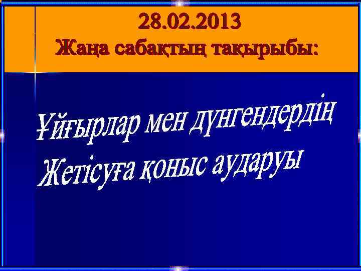Қазақстан тарихы l Сабақтың 8 - сынып тақырыбы: Ұйғырлар мен дүнгендердің Жетісуға қоныс аударуы Тарих пәнінің мұғалімі: Кариева Гүлбану 2013 жыл