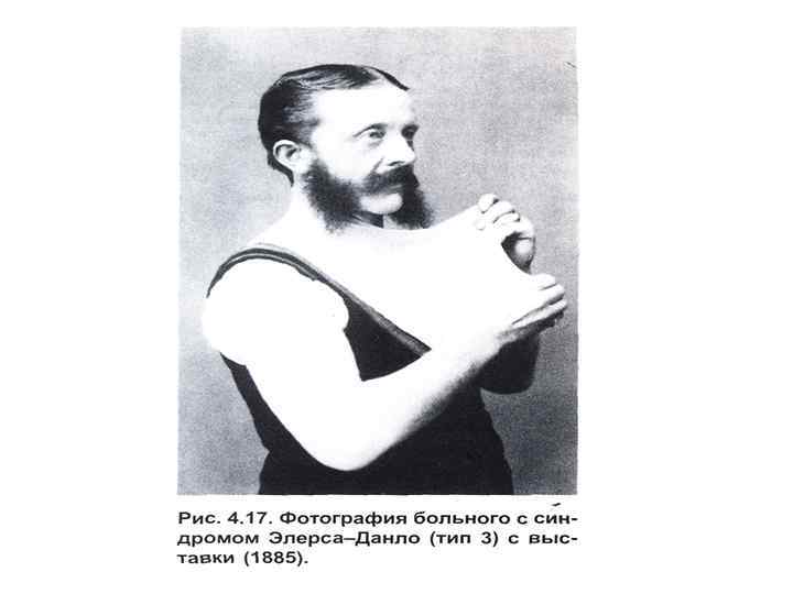 Синдром Элерса-Данло - дәнекерлеуші ұлпа ауруы. Клиникалық сипаттамасы: - Коллаген синтезінің бұзылысынан дәнекерлеуші ұлпаның өте қатты созылыңқылығы (бет терісі, шынтақ, тізе, бұғана аймағы), қанталау. - Буындар – шынашақ саусақтың 90 градусқа және одан да жоғары градусқа майысуы, тізе буынының 10 градус және одан жоғары градусқа майысуы.