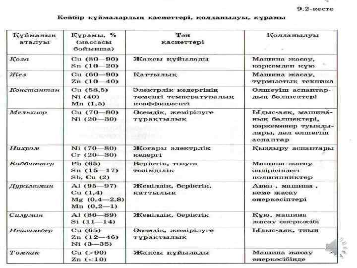 Іздену Терминологиялық жұмыс (сөздердің мағынасын айтып беру) Қиылыс сұрау 1. Құйма дегеніміз не? Сыншыл сұрау (Қателерді табу) 1. Қола Cu + Zn 2. Мельхиор Cu + Mg 3. Дуралюмин Al + Cu + Mg + Fe