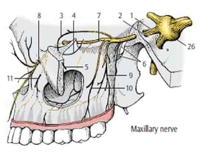 Жоғарғы жақ жүйкесі, n. maxillaris Сына сүйегінің дөңгелек тесігі арқылы қанаттаңдай шұңқырына шығып, көз шара асты жүйкелерін , бет жүйкелерін бөледі. Көз шара асты жүйкесі, n. infraorbitalis, жоғарғы жақ жүйкесінің жалғасы тәрізді. Ол көзшарасының төменгі саңылауы арқылы қанат-тағдай шұңқырынан көз шара қуысына өтіп, ол жерден көзшара асты өзегі арқылы жоғарғы жақсүйегінің алдыңғы бетіне шығады.