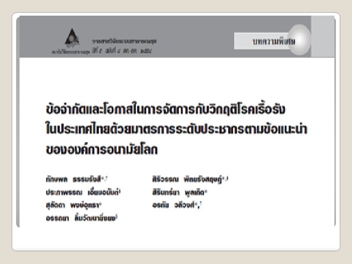 ขอขอบคณ Slide การออกแบบ มาตรการ เพอการจดการ โรคเรอรง แพทยหญงสพตรา ศรวณชชากร กรมควบคมโรค กระทรวงสาธารณสข