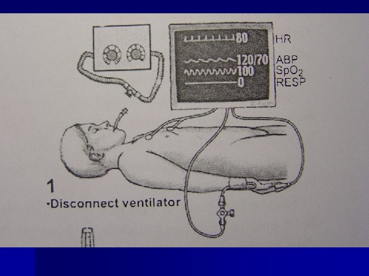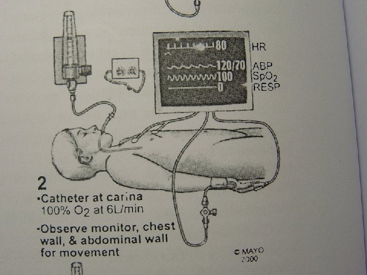 The tests for Dx of brain death Absent brainstem reflexes Apnea test Preoxygenation with 100%O 2 for 10 min. Reduce ventilation rate 10 ml/kg 10/min Insufflate with 100%O 2 at 6 lit/min to carina Maintain disconnection for Pa. CO 2=60 mm. Hg