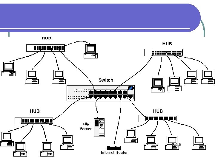 สวนประกอบของเครอขาย (Network Component( สวนประกอบพนฐานของเครอขายทองถ น l เครองศนยบรการขอมล (Servers( l เครองลกขาย หรอ สถาน (Clients( l การดเครอขาย (Network Interface Cards( l สายเคเบลทใชบนเครอขาย (Network Cables( l ฮบและสวตช (Hubs and Switches(