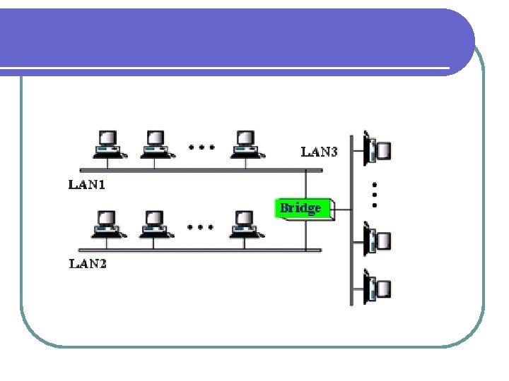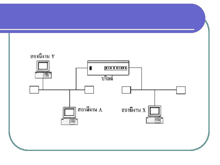 l Bridge เสมอนสะพานในการเชอมตอเครอขาย l เปนอปกรณแยกเครอขายออกจากกน ในแตละเซกเมนต l ชวยลดความคบคงในการสอสารขอมล l อยในชน Physical และ Data link ของแบบจำลอง OSI l