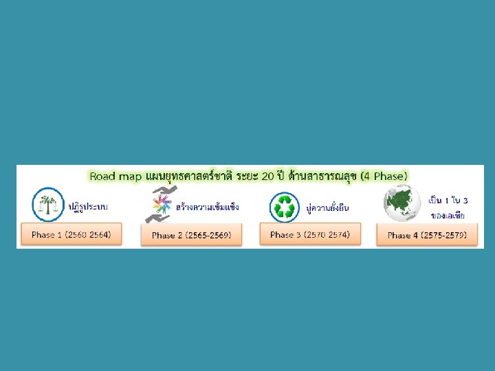 เปาหมายระบบควบคมโรคใน 20 ป ขางหนา เรานาจะมาถกทางแลว ตองตงเปาใหบรรลระบบควบคมโร คทมประสทธภาพภายใน 20 ปน เราตองการความสนบสนนทงนโยบาย และการสนบสนนจากรฐเพอใหบรรล เปาหมายดงกลาว เราตองการความรวมมอจากหนวยงานต างๆ ทงภายในและนอกกระทรวงสาธารณสขร วมทงภาคเอกชน