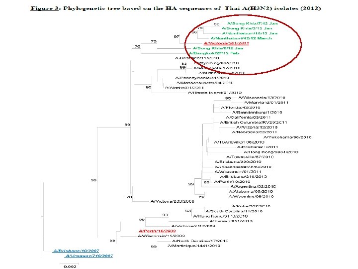 Results of influenza circulating strain by antigenic characterization from sentinel hospitals during January - June. 2012 Percentage of Thai influenza local strains during Jan. -Dec. 2012 pdm. A(H 1 N 1) % A/California/7/20090 100. 00 )H 1 N 1 ( A (H 3 N 2) A/Perth/16/2009 % 72. 72 (H 3 N 2) A/Victoria/361/2011 (H 3 N 2) B B/Brisbane/60/2008 % 74. 11 (Victoria lineage) 27. 28 B/Florida/60/2008 1. 78 (Yamagata lineage) B/Wisconsin/01/2010 (Yamagata lineage) 24. 11