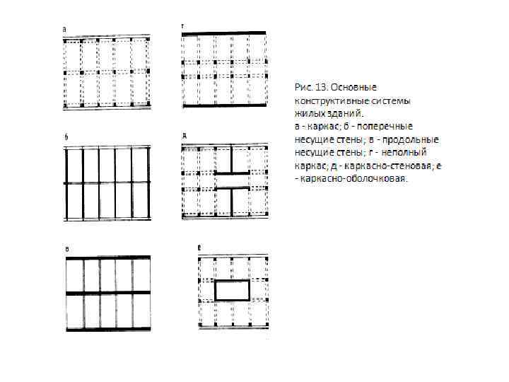 Рис. 25. Функциональнопланировочная организация летних помещений квартиры. а - виды летних помещений: 1 французский балкон; 2 консольный балкон; 3 угловой балкон; 4 балкон-лоджия; 5 лоджия; 6 - терраса; бконструктивные решения летних помещений; г ограждение балконов; д - примеры устройства участков в квартирах первого этажа.