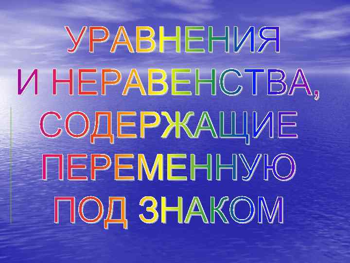 Уравнения. содержащие переменную под знаком модуля | f(x) | = a | f(x) | = |g(x) | | f(x) | = g(x) | f(x) | + | g(x) | = h(x)