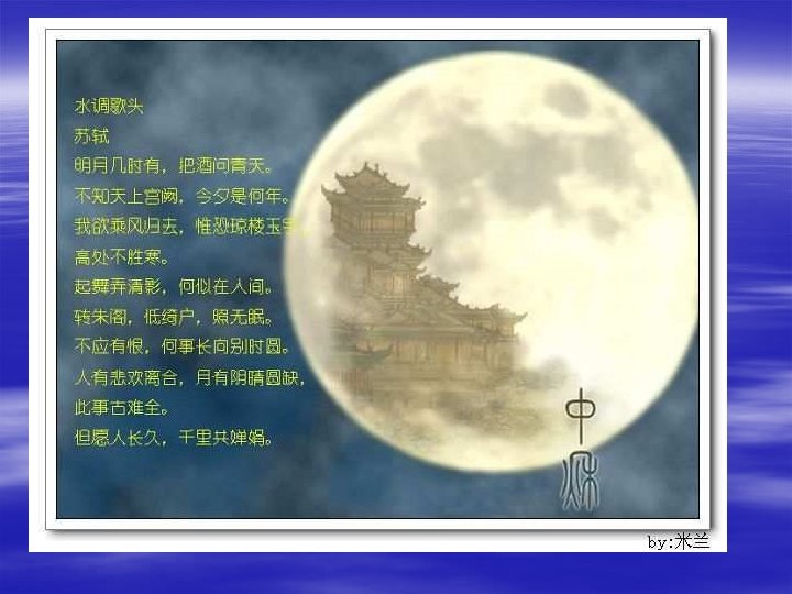 The Poems § 但愿人长久,千里共婵娟。 § May the people live forever, and share the moon shine across vast distances together.