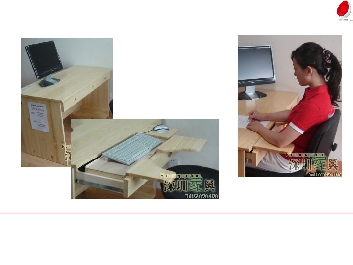 (3)老年人用的桌子不宜过 高或过低,过高容易导致人 的肌肉疲劳,脊柱侧弯,视力 下降,长期如此可能会出现颈 椎问题;过低的桌子则会使人 感到书写不适,肩部疲劳,胸 闷,起坐吃力等。 (4)对于下肢活动不便的人, 可在桌子的侧面安装扶手装置, 以便辅助走路和起立支撑。