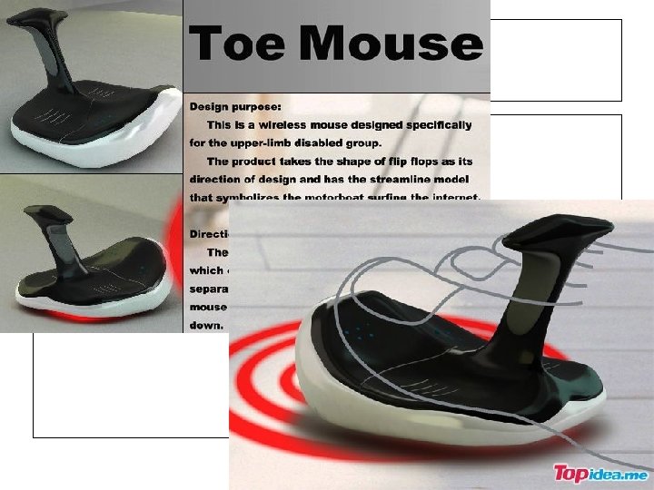 人性化的自行车设计 1、座位低而且合理,遇有危 险情况,双脚可着地,有效 地提高了行路安全。 2、座位宽大,全身放松,利 于健康。 3、具备运用腿力和腰力双重 力量的能力及后背的反作用 力,同时增大了蹬踏角度, 延长了作功时间,因此速度 明显快于普通自行车。 依据人体力学原理及人机 程学,调整了自行车决定于人体骑姿的三大关键部位, 是一种更安全、更舒适、更省力、更适于人类骑行的自行车。 问题:此自行车于普通自行车相比哪些地方更人性化?